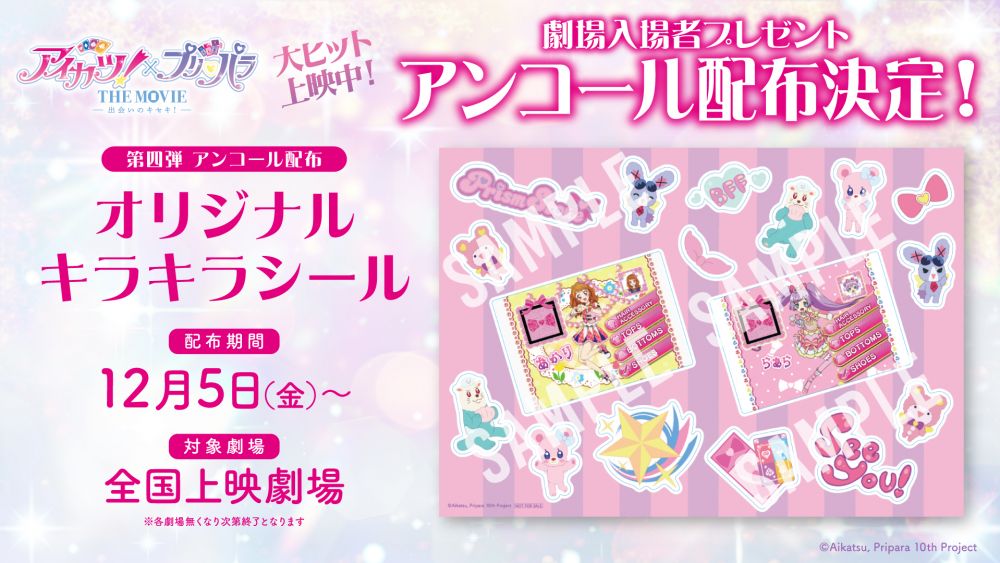 現在上映中の「アイカツ!×プリパラ THE MOVIE -出会いのキセキ!-」にて、第4弾入場者プレゼントのアンコール配布が決定しました!