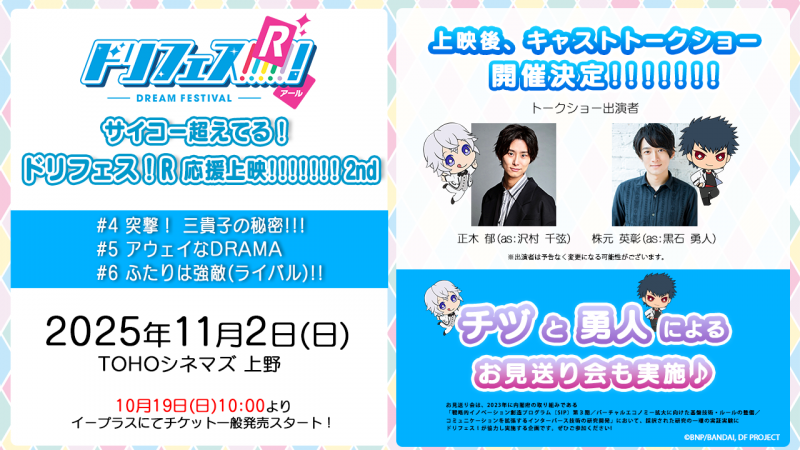 本公演は『ドリフェス!』セカンドシリーズの応援上映会第2弾として、『ドリフェス!R』第4話~第6話の上映を計2公演実施いたします。