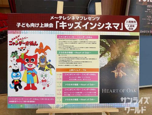 また、10月19日(日)には子ども向け上映会「キッズインシネマ」が開催され、『ニャニがニャンだーニャンダ-かめん』(2000~2001年サンライズ製作メ~テレ発全国放送)からセレクトされた話数を来場の親子連れに大スクリーンで楽しんでいただきました。
