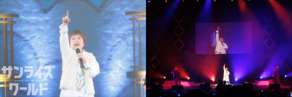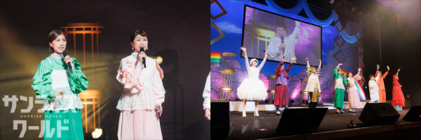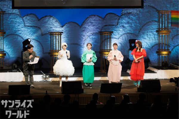 まずは昼の部と同じく、a・chi-a・chiとゲスト陣による「a・chi-a・chiアドベンチャー」のライブ、続いて「野性の翼」、「優しい海」、「千の夜を越えて」、「夢の剣」のキャラクターソング4曲のライブメドレーが披露される。ライブが終わってもいつまでも拍手が鳴り止まず、熱量は昼の部にも負けず劣らず。まるでディナーショーのような豪華なライブだっただけに、ファンのボルテージも最高潮だったようだ。