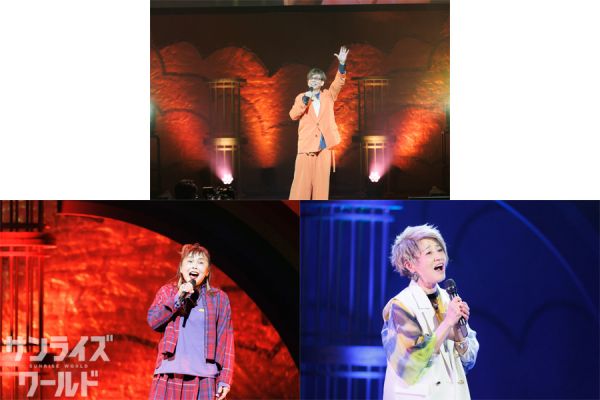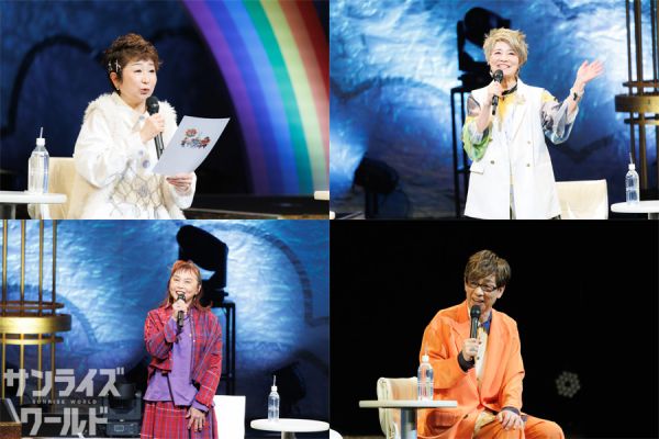 続くトークコーナーでは、まず昨年亡くなられた西村さんとの思い出について全員で語り合い、西村さんのお人柄の良さを偲び、またクラシック音楽好きという一面も紹介された。次にキャラクターソングを久々に歌った感想が聞かれると、山寺さんも高乃さんもこの30数年のなかで2〜3回くらいしか歌っていない、というくらい久々だったとか。とはいえ、とてもそうとは思えない見事な歌唱力とパフォーマンスだったことは、当日会場に来られた方々、配信を見られた方々なら、おわかりいただけるだろう。