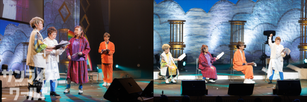 最初はa・chi-a・chiのふたりが登場し、『魔神英雄伝ワタル』のエンディングテーマ「a・chi-a・chiアドベンチャー」を歌唱するオープニングライブからスタート。曲の途中からキャストの4人も合流して、一緒に歌うという豪華な幕開けとなった。