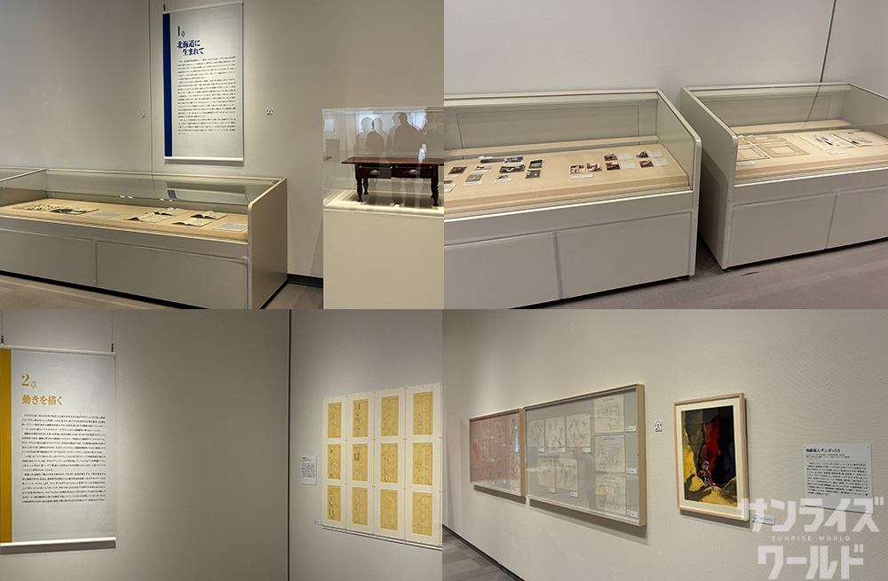 安彦さんの創作活動の軌跡をたどる回顧展として、「1章 北海道に生まれて」「2章 動きを描く」「3章 カリスマ・アニメーターの誕生」「4章 アニメーターとして、漫画家として」「5章 歴史を描く」「6章 安彦良和の現在」の6章構成で、1200点を超える貴重な資料が展示されています。