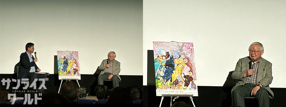 1989年に公開されたものの長い間、上映の機会がなかったことについて、「僕がちょっと拗ねてしまって」長年封印されてきたけれど、封印解除ということで久しぶりに観て「案外いいじゃねえか」と思ったことや、初めて作画監督を起用して「作監がいるっていいなと思いました」など当時の思い出を交えてお話しされました。