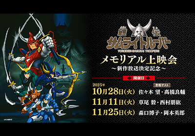 TVアニメ『鎧真伝サムライトルーパー』の2026年1月放送を記念して、1988年~1989年に放送された旧作『鎧伝サムライトルーパー』を劇場で楽しめる、『鎧伝サムライトルーパー』メモリアル上映会~新作放送決定記念~が、新宿ピカデリーにて開催決定!