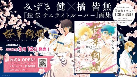 1988年4月~1989年3月にテレビ放送され、その後OAV、声優人気で大ブームをおこしたアニメ『鎧伝サムライトルーパー』。その熱烈なファンとして、多くのオフィシャルなイラストや漫画を発表してきたみずき健と橘皆無による夢のような合同画集を、2026年3月12日にGakkenから発売が決定。みずき健と橘皆無が長年描きためてきたオフィシャル&プライベートな『鎧伝サムライトルーパー』のイラストレーションの主だったものほぼすべての120点を収録。美麗な肉筆のカラー原画を忠実に再現した。幻のみずき当麻と橘征士の合作アート『Lemon Boys』も収録。描きおろし、ラフ画、著者二人のロングインタビュー記事ページなど、豪華絢爛、美しさあふれる152Pの見応えたっぷりな画集である。