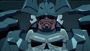 榎木:作画が本当に綺麗で、まず1話の残虐なシーン。やってることはめちゃくちゃひどいんですけど、動きとしてはすごくかっこいいんですよね。それぞれ武器も違うし、見ていて惹きつけられました。あと、最初に出てくる“トルーパーらしき存在”たちがやられていくくだり。攻撃の仕方とかがちょっと情けない感じで、でもその描き方が逆に良くて、印象的なカットがすごく多かったんです。めちゃめちゃ面白かったです。あと、カメラワークも抜群で、凱の「仁」の文字が首筋から見えるところとか、血しぶきが舞うカットから流れるようにその文字が見えてくる流れとか、強調の仕方がすごく巧いなぁと思いました。映像としてめちゃめちゃ映える作りだったなって思います。