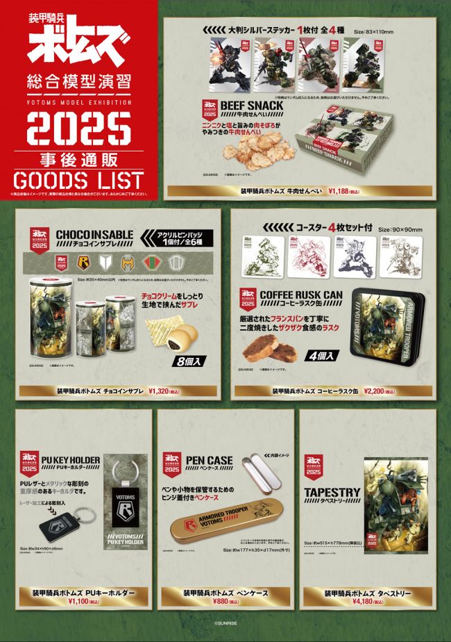 2025年11月7日(金)~12月7日(日)に北千住マルイ7F イベントスペースにて開催された「装甲騎兵ボトムズ総合模型演習2025」の一部商品の事後販売の詳細が決定いたしました。