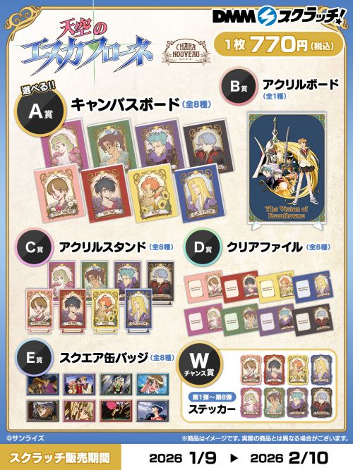 2026年1月9日(金)18:00より、DMMスクラッチにて『天空のエスカフローネ』のオンラインくじが発売決定しました。