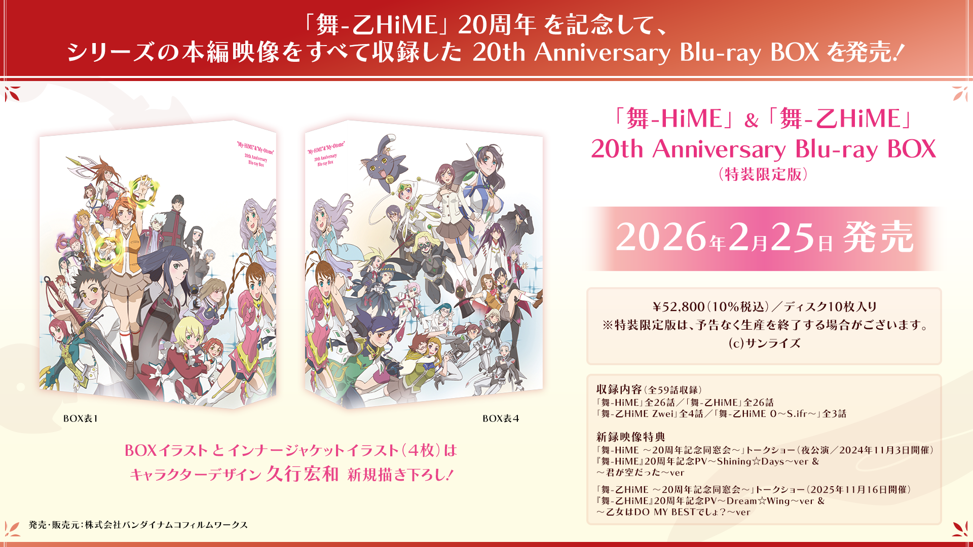 2026年2月25日発売予定の「「舞-HiME」&「舞-乙HiME」20th Anniversary Blu-ray BOX(特装限定版)」商品スペックに変更がございました。以下の通り、ご案内させていただきます。