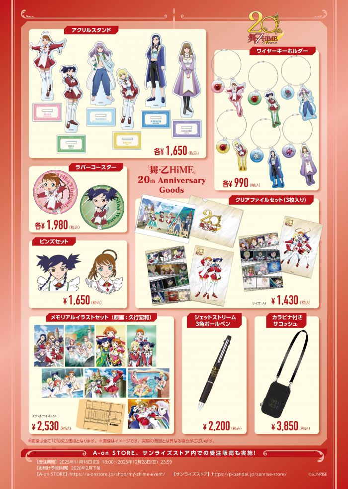 11月16日(日)新宿ピカデリーで開催される上映イベント「舞-乙HiME ~20周年記念同窓会~」の会場にて、20周年記念グッズを先行販売いたします。