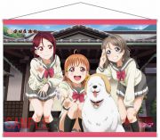 千歌、梨子、曜&しいたけの描き下ろしイラストを使用したタペストリーが登場!