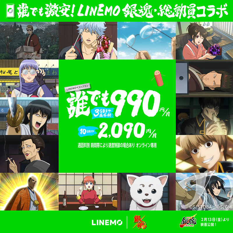SoftBankのオンライン専用ブランドLINEMOと「銀魂」がキャラクター総動員コラボ中!