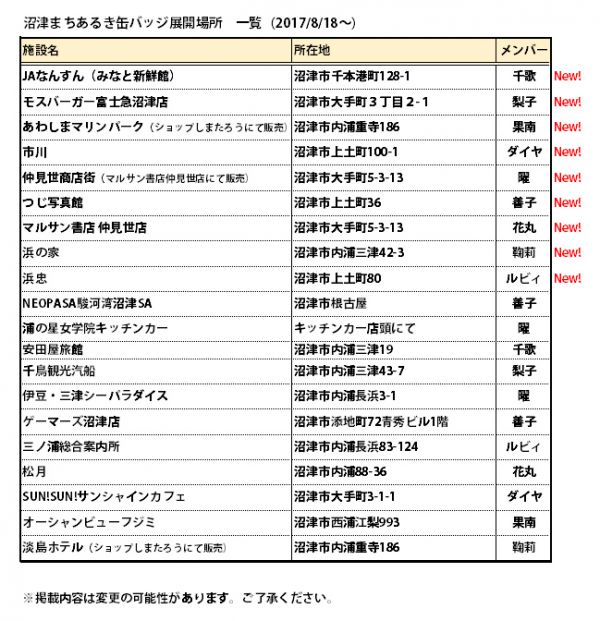 ◆夏まつり絵柄のまちあるき缶バッジも期間限定で下記の店舗にて販売中です。