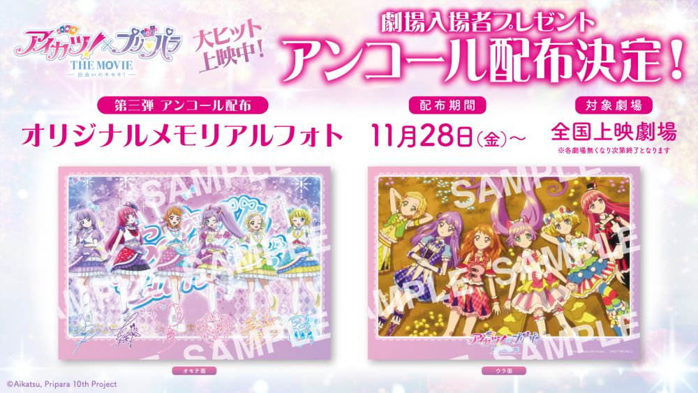 現在上映中の「アイカツ!×プリパラ THE MOVIE -出会いのキセキ!-」にて、第3弾入場者プレゼントのアンコール配布が決定しました!