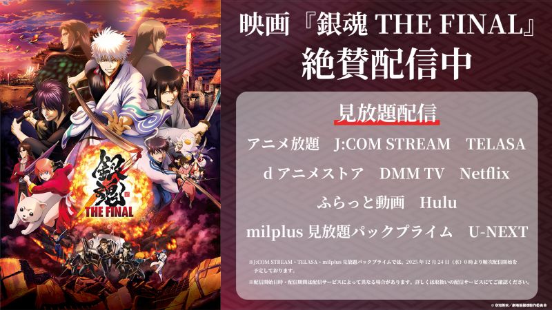 各プラットフォームにおいて『銀魂 THE FINAL』が見放題配信中。